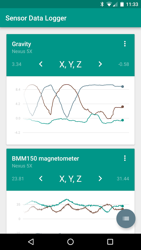 Регистратор данных датчика может отображать данные из всех родовых типов датчиков, таких как ускорение, сила тяжести или магнитного поля. Кроме того, он может визуализировать все конкретного устройства датчики, которые вы могли бы иметь, например, двойное нажатие, обнаружение шага или температуры.