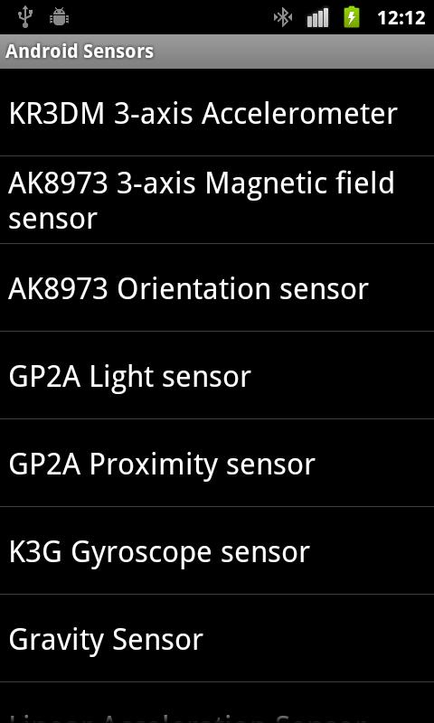 Основные / свет приложение для просмотра доступных датчиков для вашего устройства и их параметры.