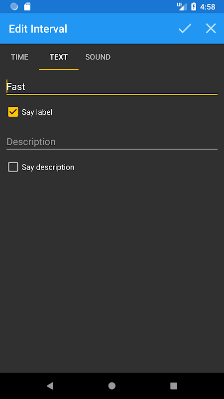 - текст в речь функция для текстов интервала (Этикетка, Описание)
