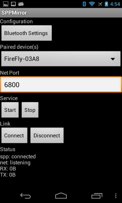 This project combined with Linux-on-Android can enable a complete Arduino development environment on Android. Serial Mirror solves a problem that most Android devices do not have USB ports to enable normal programming of Arduino devices. To further complicate the the issue the Bluetooth serial port is not shared from Android to Linux-on-Android. To work around these issues this app runs as a service which connects to Arduino over Bluetooth and to the avrdude programmer over a TCP socket. The serial and TCP data are mirrored by Serial Mirror. As a result, Serial Mirror is also useful for devices which do not have root access. After starting Serial Mirror you can connect via a telnet app to send and receive data from the Bluetooth device. Serial Mirror does not transmit any data unless explicitly requested by the user.