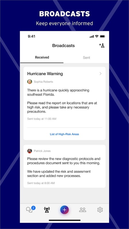 • Транслируйте информацию в реальном времени на мобильные устройства ваших команд.