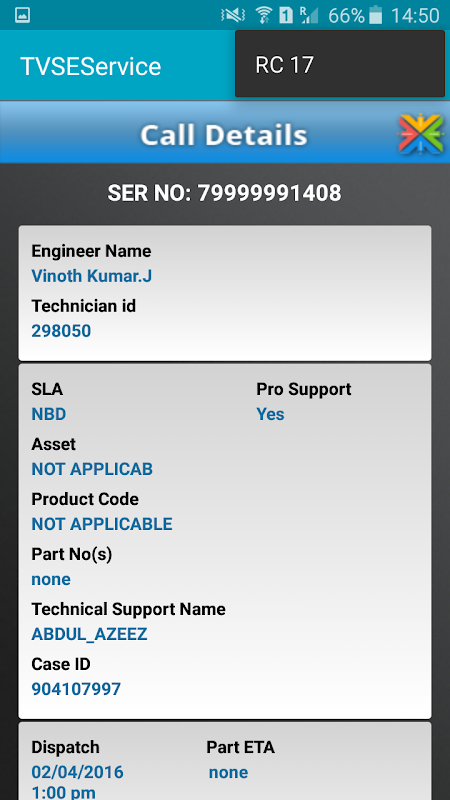 TVS-E Servicetec application is a support tool designed for TVS-E service engineers to provide customer onsite support with features to view, update technical support cases and replacement parts dispatches.