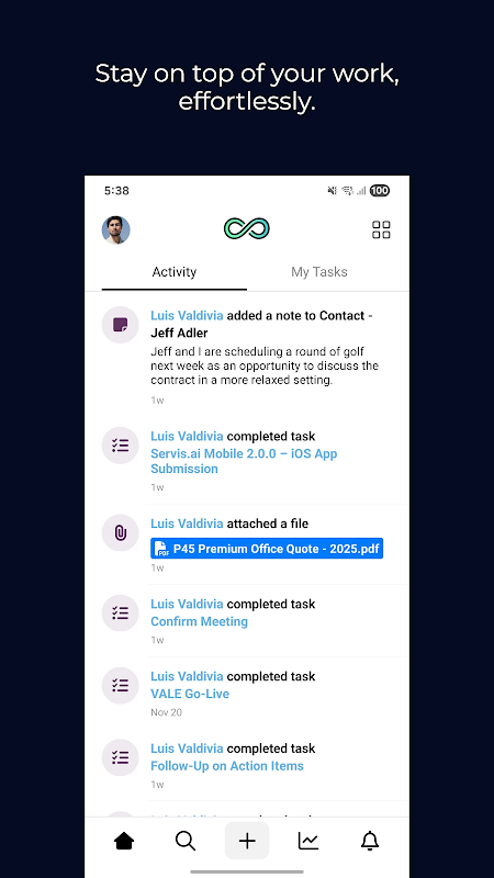 Мобильное приложение servis.ai позволяет вам легко управлять бизнес-операциями, где бы вы ни находились. Уведомления в режиме реального времени, панели мониторинга и отчёты, а также все данные вашей компании доступны одним касанием.