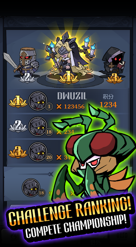 Игра будет фиксировать количество уровней и боевую мощь всех рыцарей в рейтинговом списке. Рыцари, занявшие верхние позиции, могут получить большое количество наград Королевства Теней! Я верю, что вы готовы выделиться из множества рыцарей и завоевать собственный чемпионский титул!