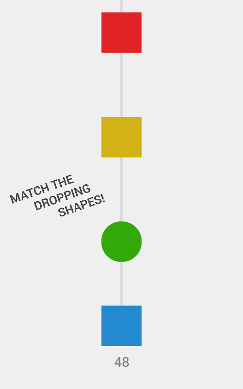 Tap and hold the screen to switch between a square and a circle in order to match the shapes rushing in from the top.