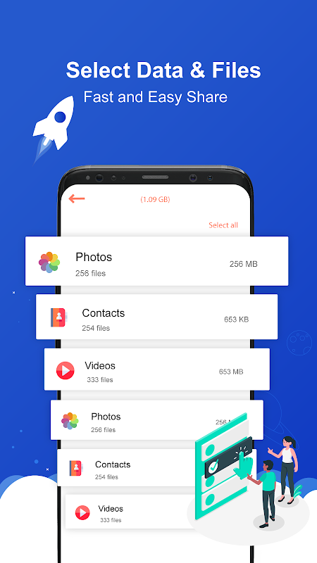Our phone clone uses bespoke techniques to transfer clone everything from my old phone to my new android phone. Moreover it is not just cloning application rather it can also be use as simple data sharing or file sharing application as it gives option to select my complete files including calendar and contacts transfers. Transfer complete data over secure and speedy point to point wifi connection without any interference of any other wifi network bridge. In simple words a smart share, phone to phone transfer technique when want move data or copying data from old mobile to new one.Do you want to clone your data from one device to another? Do you want to transfer your data at very high speed and accuracy? Phone Clone is the app made just for this purpose. By using phone clone, you can easily clone your files and transfer your data from one device to another at a very fast speed and accurately.Purchasing a new phone is a very exciting feeling but the data transferring one by one is a horrible thing, Clone app is here to save from this hard work of transfer files one by one or send files by wire or cable. You do not need to transfer files one by one or transfer like folder by folder, With the CloneIt data transfer app, you can select Multiple files which you want to share i.e. video + pdf file + audio + images, etc. Smart Phone Clone is a convenient data migration application provided . You can transfer the contacts,notes,recordings,calender, photos, music, videos,documents and applications of your old phones to new mobile. Phone Clone - Smart switch is astonishing data smart switch that is vital app for contact transfer. There is no need to dismay about sending call log and audio files indeed data of all formats. The application offers alluring features with safe and secure transferring without any risk of data loss. Install it and enjoy its exquisite characteristics.All data from one phone to another with phone switch. File sender is a great tool for backup and recovery of data to easily copy data from the old device to the new one. Download mobile switch if want mobile transfer data to new phone.We have used latest android abilities to make your experience best so you can share files, share pictures, share contacts, and share calendar data as well without any extra hassle. So switching your phone is not a problem anymore as our phone clone transfer everything to new phone so can enjoy abilities and features of new phone with any data loss and keeping all the old stuff safe.