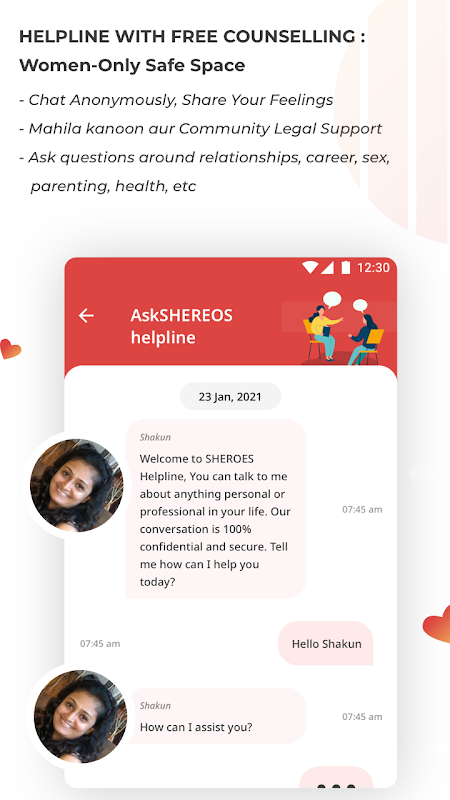 Безопасное пространство для женщин, где они могут выразить себя, пообщаться с сертифицированными и обученными консультантами онлайн, получить психологическую поддержку и попросить совета. От консультирования по вопросам карьеры и помощи в случае домашнего насилия до помощи в решении личных и семейных проблем — получите рекомендации по поводу всего, что вас беспокоит. Ваш выбор принять, ценить и быть нежным с собой, связавшись с горячей линией SHEROES.