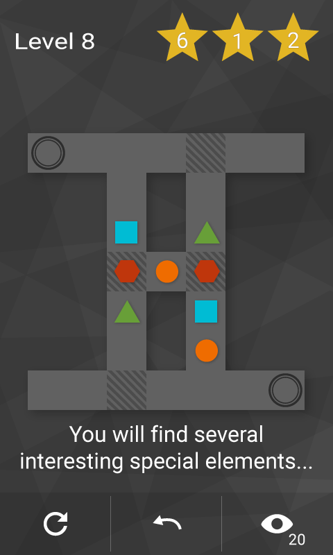 Dive into the world of shapes and discover interesting special elements. Face awesome challenges in plenty of levels. Starting with easy levels, the levels become more and more difficult. Earn achievements by solving level packs completely. Shifting Shapes - An adicting puzzle game.
