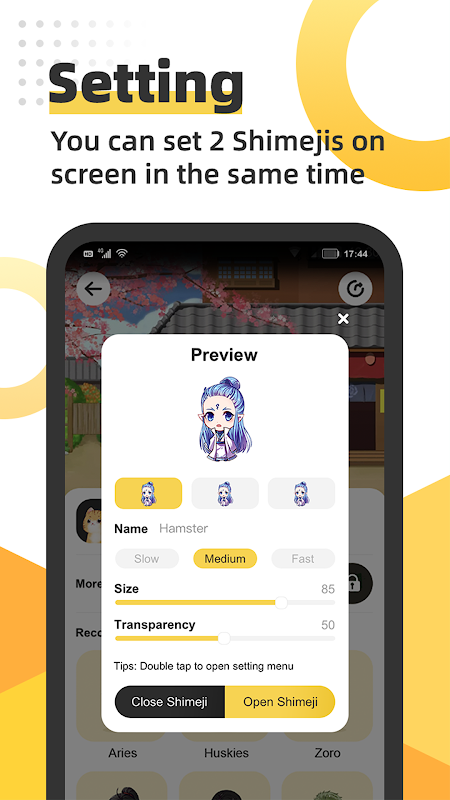 Вы можете выбрать свой любимый талисман на экране, у каждого персонажа есть своя особая анимация. Кроме того, вы также можете установить 8 симедзи одновременно.