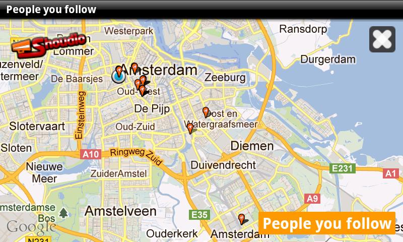 Record & Share geo-tagged audio snippets with your friends via Shoudio.com, Twitter, Facebook and Foursquare.