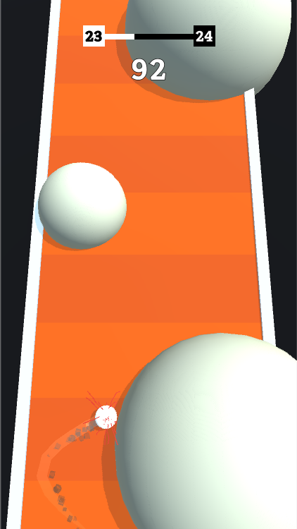 Мяч движется влево и вправо непрерывно. Нажатие и удерживание заставляют мяч двигаться вперед. Уклоняйтесь от как можно большего количества препятствий!