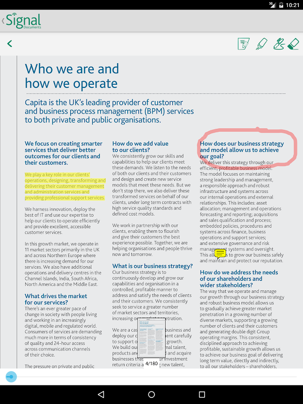 The Signal Documents app provides shareholders with fast, convenient access to a wide range of annual reports and other documents from some of the UK’s best known listed companies. Search for a company, download the report, then mark up and save your comments for future reference. The ‘My Documents’ screen will store the reports you download so you don’t need to be connected to the internet constantly, and you can add companies to your ‘watch list’ to ensure you don’t miss any new documents they publish. The Signal Documents app is the ideal AGM season companion, removing the need for paper annual reports. This app is provided by Link Asset Services, a leading share registrar to listed companies.