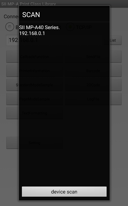 Это приложение позволяет печатать текст или штрих-кода для MP-A серии мобильных принтеров (SII) Seiko Instruments Inc. использует MP-A Library печати Class предоставленный SII.