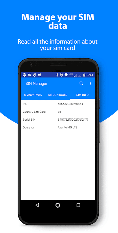 Отображение основной информации о вашей SIM-карты и сохраненных контактов на SIM-карте.