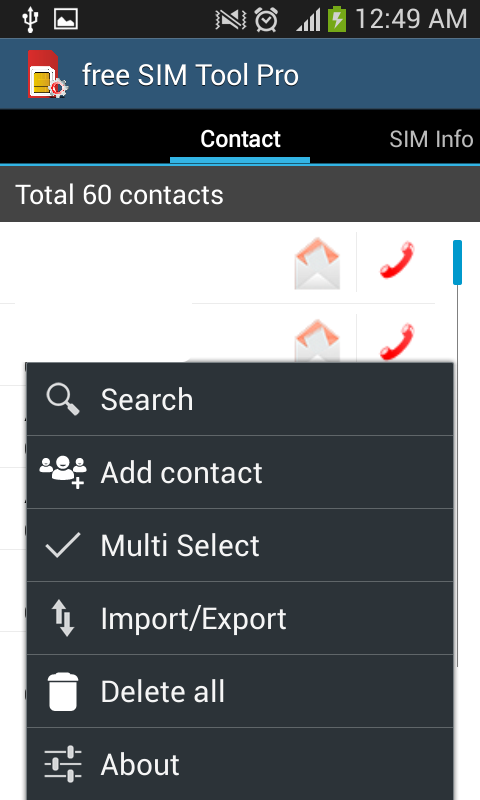 SIM Toolkit PRO очень важно, легко и быстро просмотреть вам информацию SIM-карты. Импорт или экспорт и удалить или добавить новый номер телефона. Направлено сообщение или выполнить вызов из этого приложения. PRO-менеджер SIM Toolkit Приложение позволяет управлять SIM и экспортировать контакты с SIM-карты легко. Облегчение управления информацией на SIM-карте с помощью управления контактами. И предоставляет информацию, которая зара полезна. Это также дает возможность легко управлять SIM-картой.