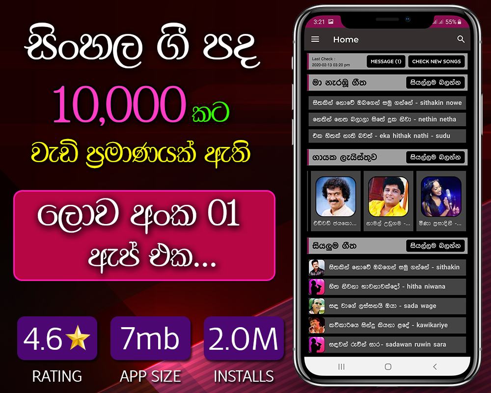 Оффлайн книга с текстами песен на сингальском языке. Доступно более 10000 песен на сингальском языке