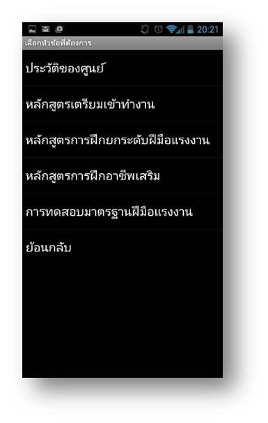 แอปพลิเคชันที่ได้รับการพัฒนาขึ้นนี้สามารถทำงานฟังก์ชันพื้นฐานได้แก่ การเข้าถึงสื่อการสอนที่ศูนย์พัฒนาฝีมือแรงงานจังหวัดอุตรดิตถ์เผยแพร่ทางอินเทอร์เน็ต การเข้าถึงเว็บไซต์ข้อมูลข่าวสารที่เกี่ยวข้องกับศูนย์พัฒนาฝีมือแรงงานจังหวัดอุตรดิตถ์ และการทำแบบทดสอบเพื่อประเมินความรู้พื้นฐานด้านงานช่างของผู้ใช้งานแอปพลิเคชัน