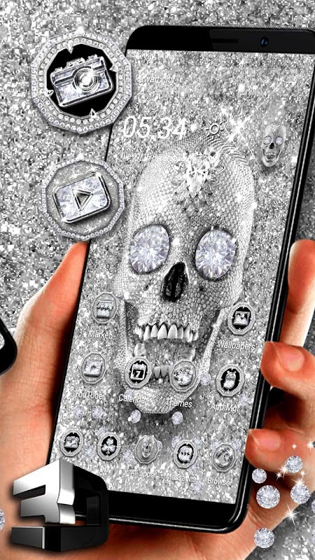 то вы ищете? Хотите применить череп роскошный блестящий алмаз 3D гравитацию тему? Если это так, приезжайте сюда и воплотите в жизнь свое желание настроить телефон с помощью черепа роскошного блестящего алмазного 3D-гравитационной темы. Бесплатно доступно для всех с расширенными функциями, которые сделают вас счастливыми.