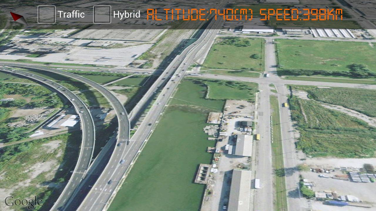 Use your smartphone to fly over Google maps satellite view with real-time traffic view.