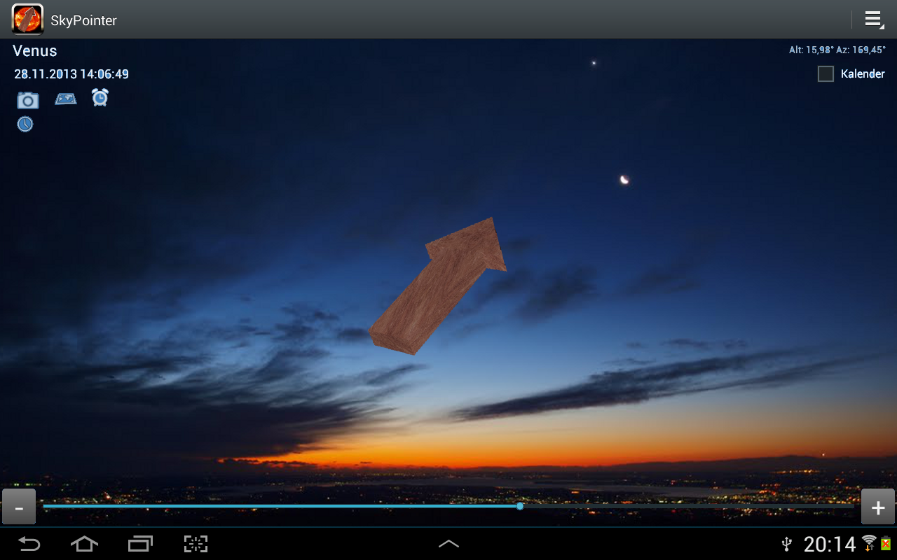 SkyPointer является простой, но полезный инструмент, чтобы показать положение солнца, луны, самых ярких планет, Международной космической станции МКС, телескопа Хаббла, китайский станции Tiangong2 и других объектов. Все объекты видны невооруженным глазом. С SkyPointer легко выяснить положение небесных объектов в определенное время или на определенную дату.