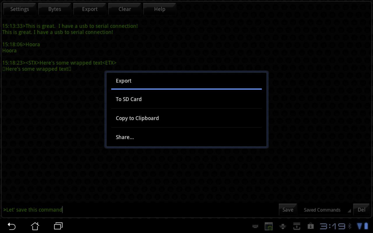 Slick USB 2 Serial Terminal allows you to use your tablet with your Prolific or FTDI based USB to Serial adapter and connect to your serial devices.