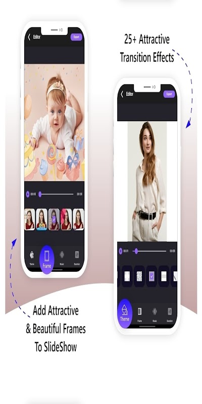Lots of beautiful frames for your video to be attractive. You can also edit the video speed fast or slow by selecting the duration of the slideshow.