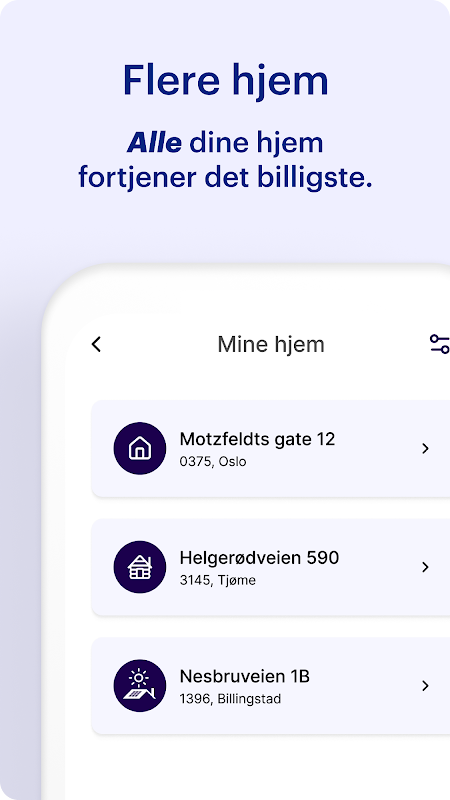 Приложение автоматически получает данные о вашем потреблении электроэнергии и поставщике электроэнергии из Statnett и подключает вас к полному обзору всех контрактов на электроэнергию в Норвегии от Совета потребителей. Агент круглосуточно следит за рынком и точно знает, когда и какой контракт вам следует переключить, основываясь на вашем потреблении и истории.