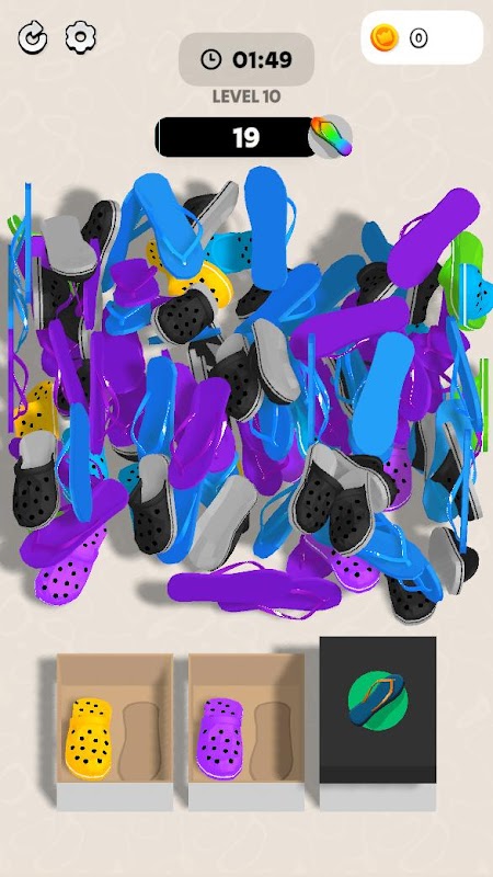 Распутайте хаос, соберите тапочки и пройдите каждый уровень. 👉 Загрузите сейчас и начните свое приключение по подбору тапочек уже сегодня!
