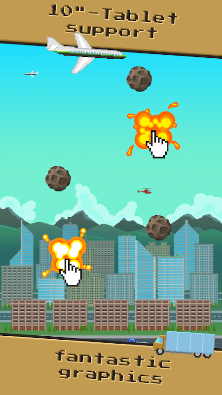 Slumpy Asteroids is a fast paced tapping game which gets every second faster and faster. Protect the city by destroying the slumpy asteroids before they crash into the buildings and be the hero the inhabitants need, otherwise it will be the last day on Earth for this city. Survive as long as you can and destroy as many Slumpy Asteroids as you can by clicking on them. Collect powerful power ups in the game and get the best highscore.