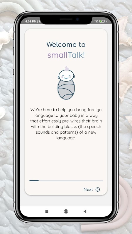 SmallTalk основан на последних исследованиях в области изучения мозга и языка. Наше приложение сочетает в себе уроки, подготовленные экспертами, интерактивные занятия и аутентичный контент от родителей со всего мира, чтобы создать наиболее эффективный опыт изучения языка для вашего ребенка. Подарите своему малышу наилучший старт для развития мозга и изучения языка с помощью smallTalk!