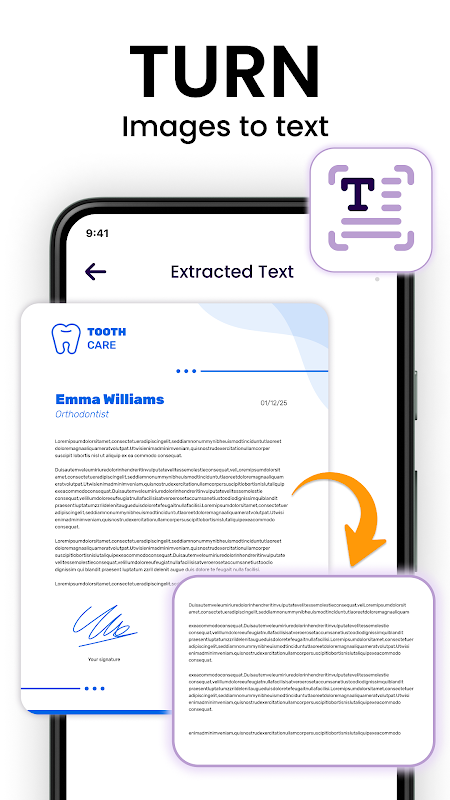 Упростите сканирование документов и распознавайте и извлекайте текст из изображений для редактирования или отправки в виде обычного текста.