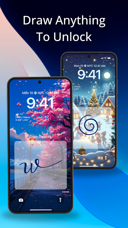 • Рисование экрана блокировки жестов: нарисуйте жест, чтобы разблокировать телефон. Это может быть круг, звезда, сердце или любая форма, которая вам нравится.