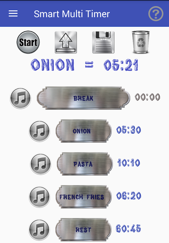 ✓ Ability to save your timer details for a later use (Names,timers,alarm sounds and breaks).