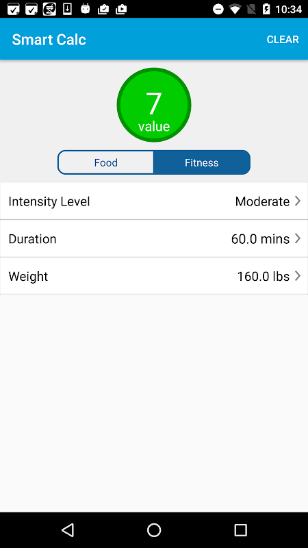 The app also calculates the New Fitness Score Values based on Intensity, Duration, and Current weight values plus decimal points for accuracy!