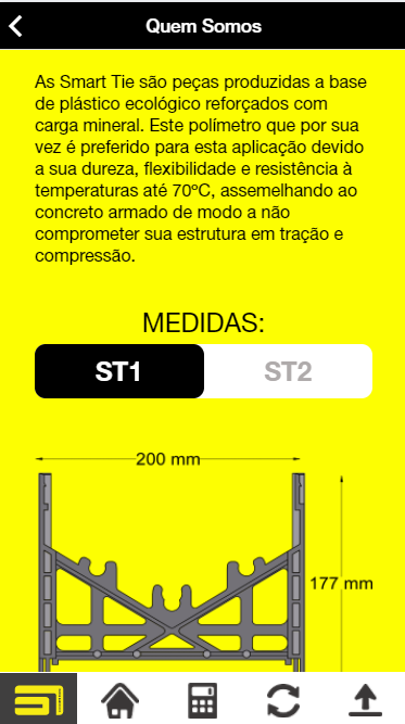 As Smart Tie são peças produzidas a base de plástico ecológico reforçados com carga mineral. Este polímero que por sua vez é preferido para esta aplicação devido a sua dureza, flexibilidade e resistência à temperaturas até 70ºC, assemelhando ao concreto armado de modo a não comprometer sua estrutura em tração e compressão. Utilize o nosso aplicativo para fazer cotação, trocar informações de projetos, calcular o custo com o uso dos ties e ainda fazer conversões de medidas.