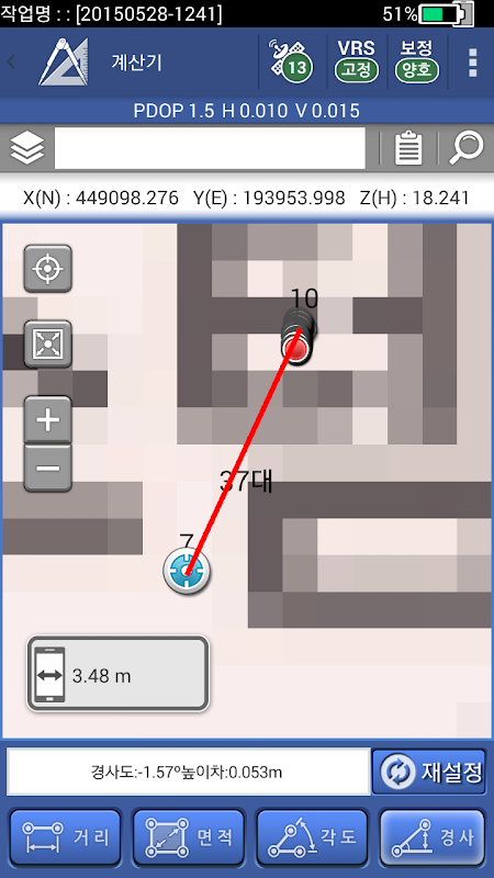 1. застолбил и значения дельта отображаются в текущих точек съемки