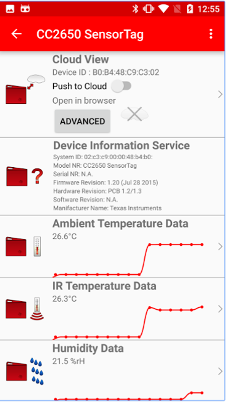 The SensorTag offers a wonderful array of Bluetooth sensors for collecting real-time data such as Temperature, Barometer, Luxometer, Gyrometer, Magnetometer, Accelerometer, and Humidity.