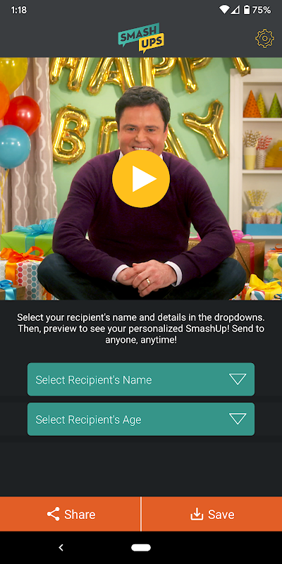 SmashUps — это очень персонализированные, вызывающие улыбки и доступные для распространения видеоролики. Создавайте и отправляйте забавные, уникальные видео, которые заставят ваших друзей и семью смеяться, улыбаться, хихикать или просто радоваться. Идеально подходит для дней рождения, годовщин, праздников или просто так!