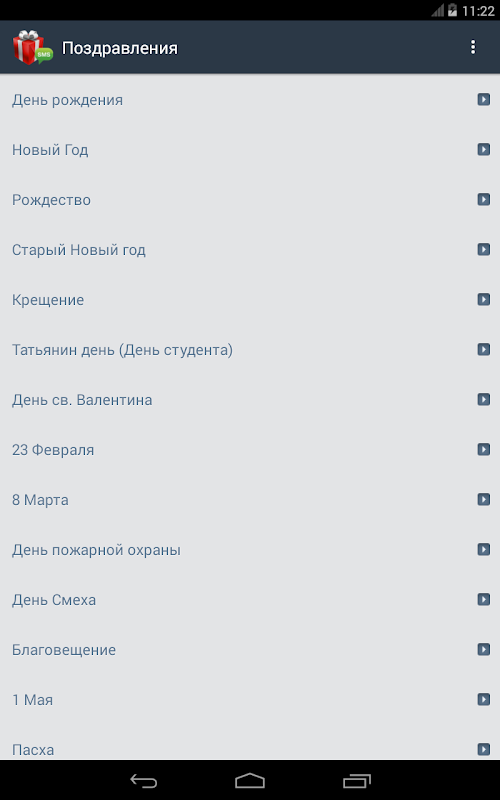 SMS BOX: Поздравления содержит следующие разделы смс: