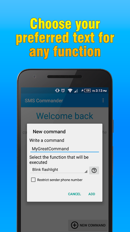 SMS Commander lets you control your device by sending programmed SMS. You will be able to choose any text for any of the following function:
