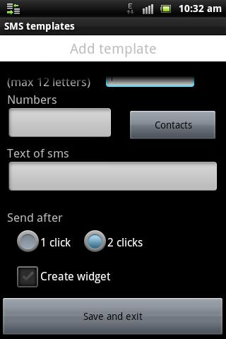 Create SMS templates, save as widgets, and send SMS messages with one touch.