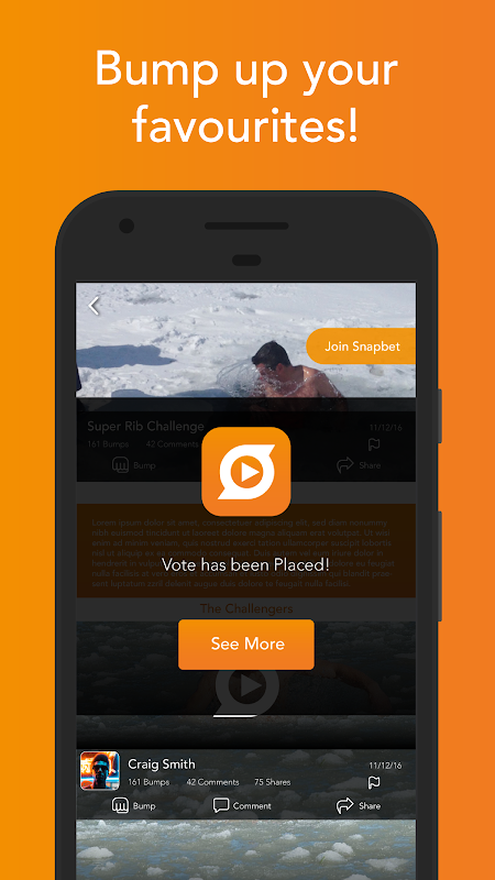 - Join any bet, including challenges by celebrities, companies or Snapbets leaders.