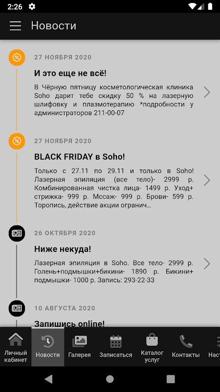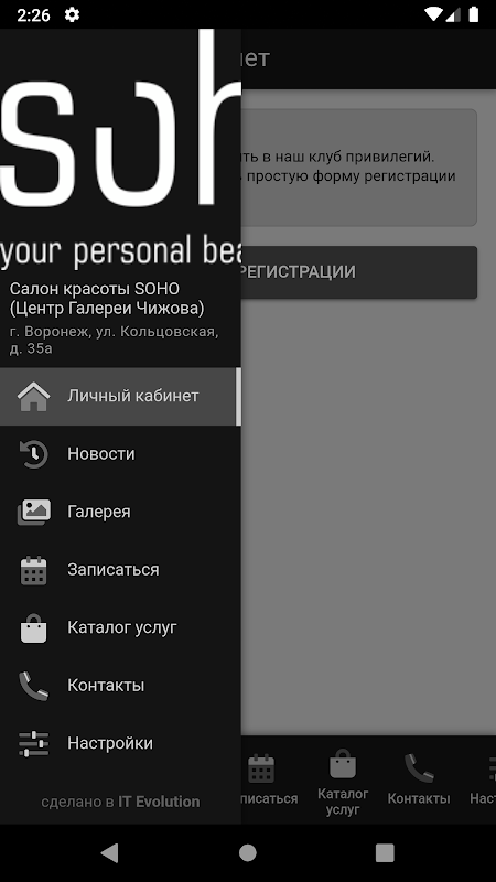 Мобильное приложения для клиентов салона Soho ГЧ Воронеж