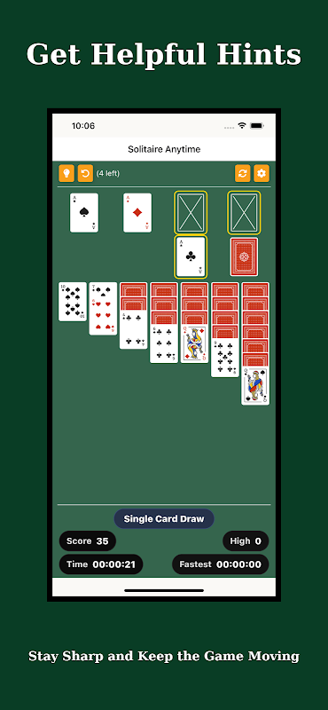 Наслаждайтесь классическим пасьянсом без рекламы и отслеживания. Solitaire Anytime позволяет выбрать вариант с обменом одной или трёх карт, включить систему подсчёта очков Vegas, использовать умные подсказки, установить лимит отмены и даже играть с таймером обратного отсчёта для коротких сеансов. Всё работает офлайн — учётная запись не требуется.