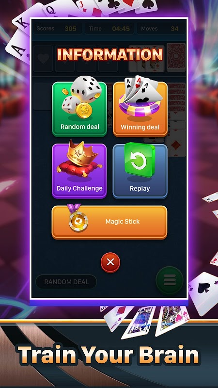 - Раздел статистики, продолжайте улучшать и бросать вызов себе во время пасьянсов