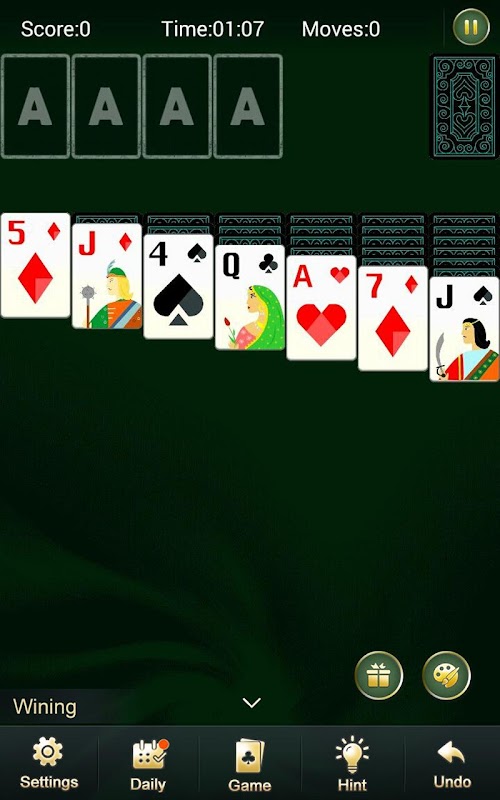 Solitaire обладает зеленым фоном, который оберегает ваше зрение и делает ваши впечатления при игре в карточные игры самыми приятными.