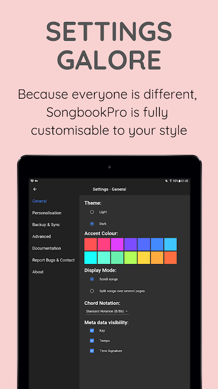SongbookPro - отличный инструмент для гитаристов, басистов, вокалистов и всех, кто использует аккорды, тексты песен, ноты или тяжелые сборники песен. Он позволяет легко избавиться от всей этой бумаги, отображая музыку в гибком, удобном для чтения формате.