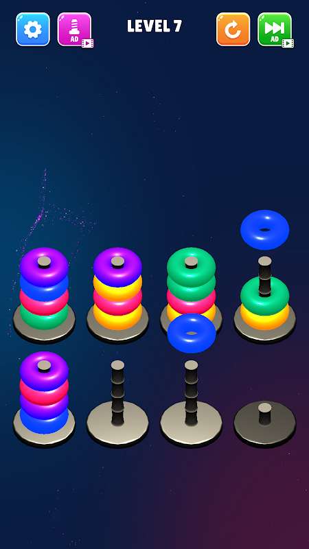 Складывайте, меняйте местами и сортируйте блестящие цветные кольца на нужные колышки, пока каждая башня не будет идеально организована. С каждым уровнем головоломки становятся сложнее, цвета ярче, а удовольствие — больше.