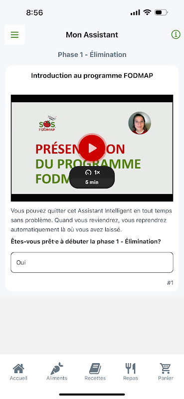 Ассистент шаг за шагом проведет вас с помощью видеокапсул от диетологов, экспертов в области здоровья пищеварительной системы и FODMAP, простым, понятным и точным способом, чтобы не оставлять сомнений и правильно следовать протоколу. Ассистент использует запатентованный адаптивный алгоритм, чтобы определить, какие количества следует проверять во время повторного тестирования, исходя из ваших индивидуальных симптомов.