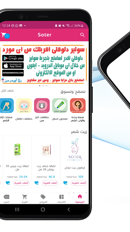 Soter - хорошо зарекомендовавшая себя компания в области медицинских товаров и косметики.Ее филиалы находятся в Шубре - Каир.Он работает для обслуживания всех клиентов по всей республике.Компания стремится облегчить доступ к ней для своих клиентов через веб-сайт и мобильное приложение. Это первое в своем роде приложение для оптовой продажи косметики и предметов медицинского назначения через электронное приложение. Рекомендуемое (бесплатное) Разработано, чтобы быть уникальным, простым в использовании и наслаждаться простым отображением продуктов, предоставляя при этом всю информацию, которая вам может понадобиться в процессе покупки в нем. .